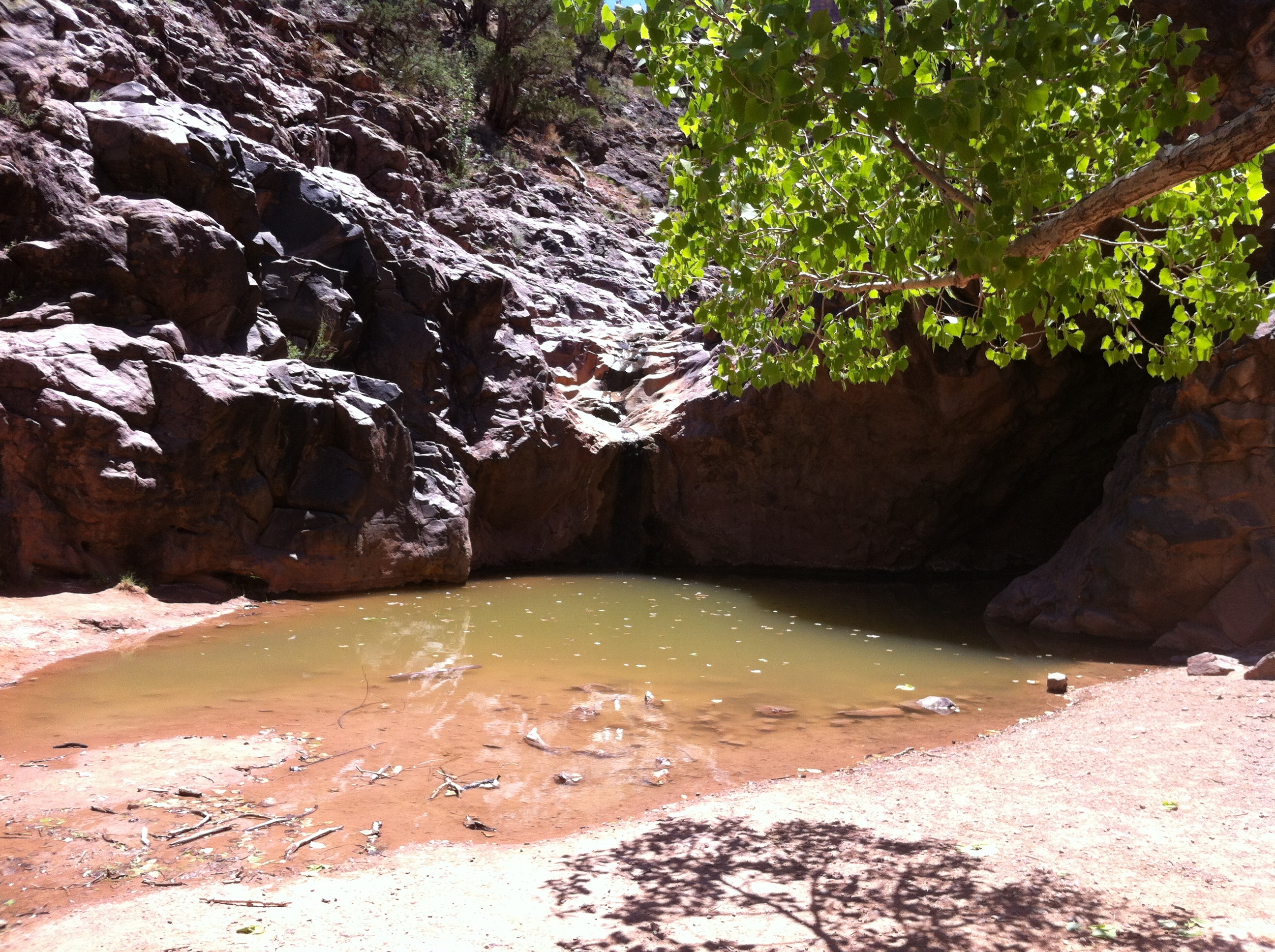 Yesterday, in the heat-stained midst of Training Day Four, the three of us came upon a shallow, muddy puddle along the No Thoroughfare Canyon trail. A joy leapt up in my chest. While my new boss, Nick, babbled on (and I mean that in the nicest way possible, he’s a great interpreter) about turning a lizard sighting into an interpretive moment, I crouched down and dipped my fingers into the water. It was lukewarm and gritty, but hell, I’d take what COLM was giving me.