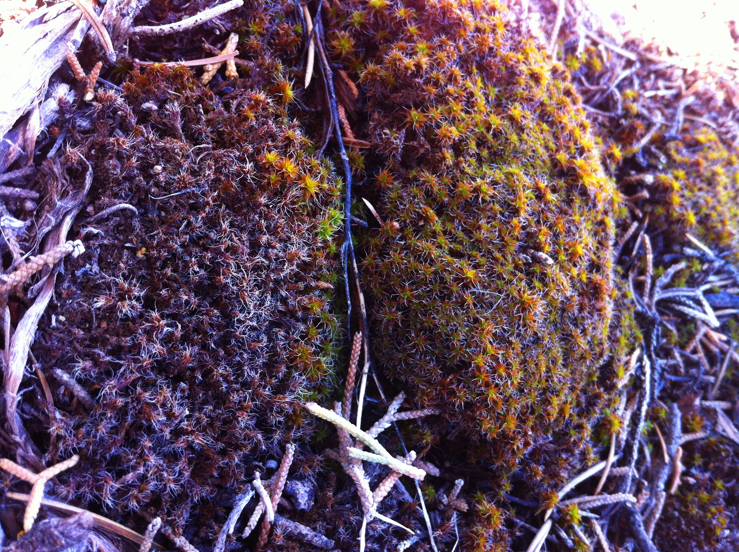 Before I leave you all for an exciting trip to the grocery store, remember resurrection moss? The moss that lies in wait for a flash flood, then springs into life and color? Well, I dumped some water onto some a couple days ago and captured photographic evidence of its transformation for you.
