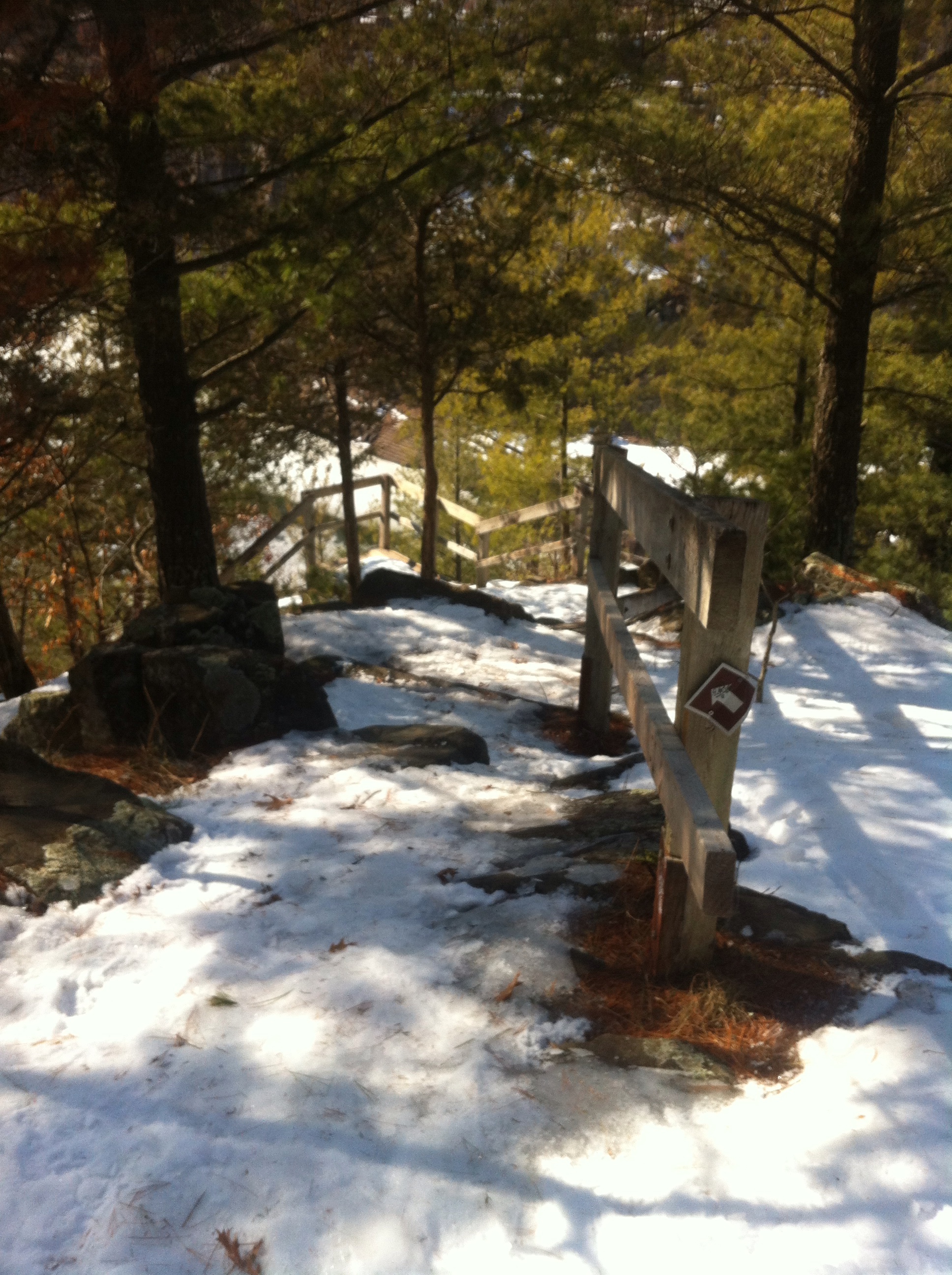(The night was very cold. I only had to hike in about a third of a mile to where I camped, the only person there, so I loaded up my pack and then carried two down comforters in my arms. I’m always amazed at how much body heat a person can produce, and I stayed reasonably comfortable completely buried in my self-made cocoon, but still. The temps dropped to about seven degrees. I woke up every hour or so chilly, and ate some peanuts and did some push-ups in my sleeping bag. In the morning my boots were frozen solid, as were my grapes and string cheeses. Frozen grapes are delicious. Frozen string cheese is impossible.)