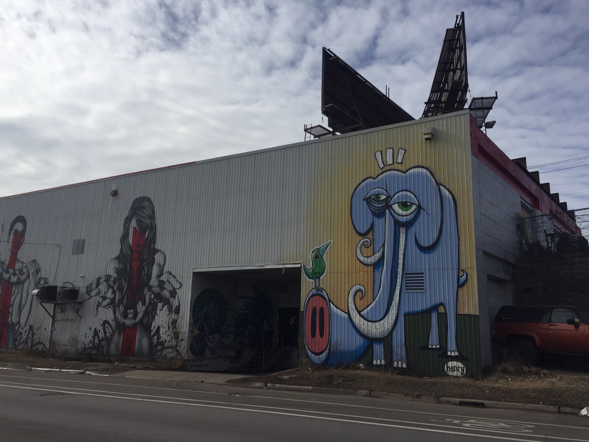 These walks give me a new perspective of the cities, and the chance to duck into interesting places, stop frequently for snacks, talk to strangers, and make a new sense of the maps. It’s different than being in a car, or even on a bike. A mile takes 17-18 minutes and is full of interesting sights and smells: a well-crafted treehouse in a front yard; people lined up for pastries in a warm shop; posters in windows; tiny red squirrels; a cloud of pot smoke; smoking sausages; a three-story tall mural of beautiful women; families bundling into tiny cars; a game of flag football; a silent gathering waiting for a bus.