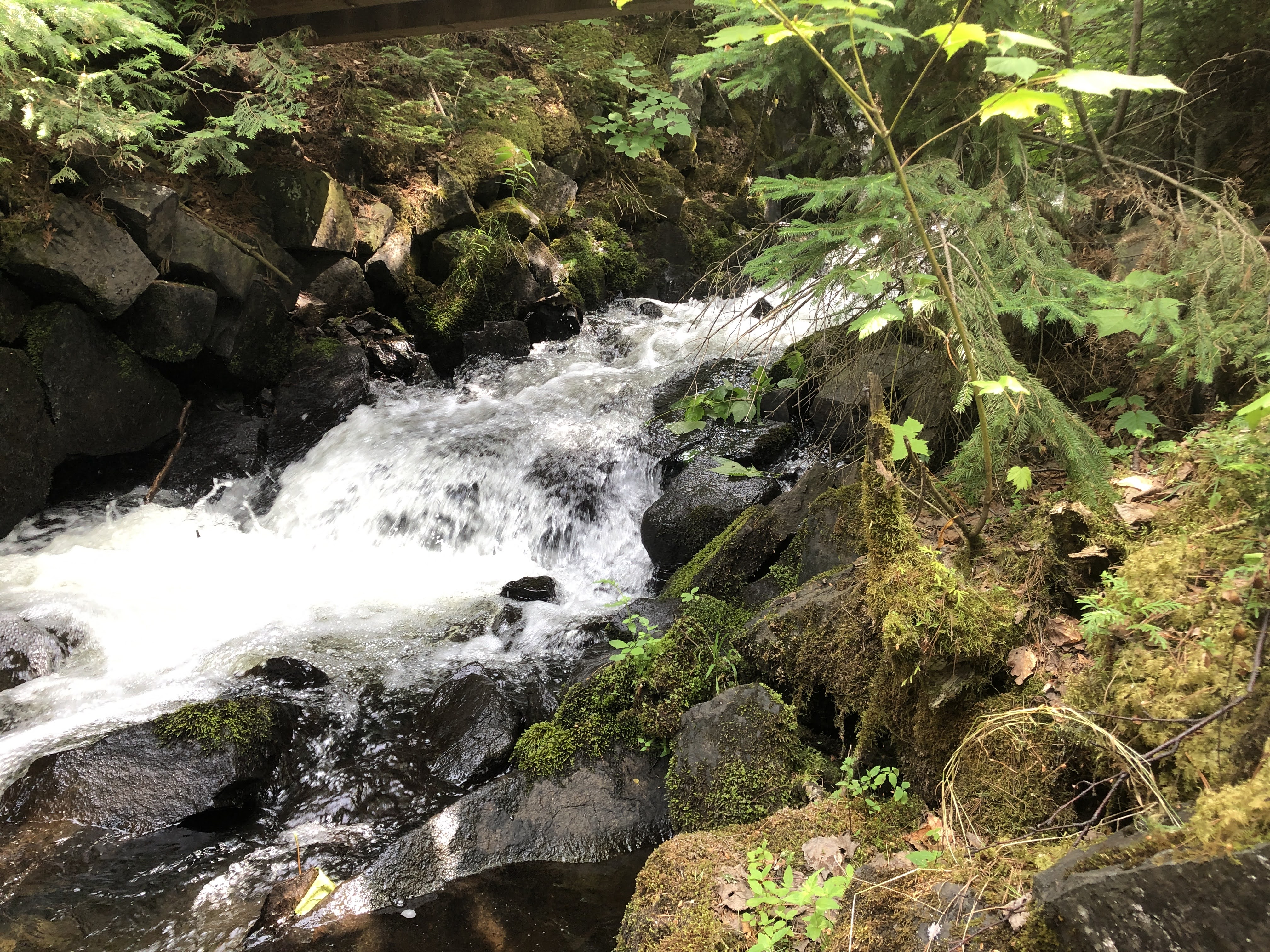 Once I saw a perfectly woven birds’ nest perched six inches from my face in the alders. We saw an enormous pileated woodpecker, very close, and startled a puffed-up mother grouse who startled us back.