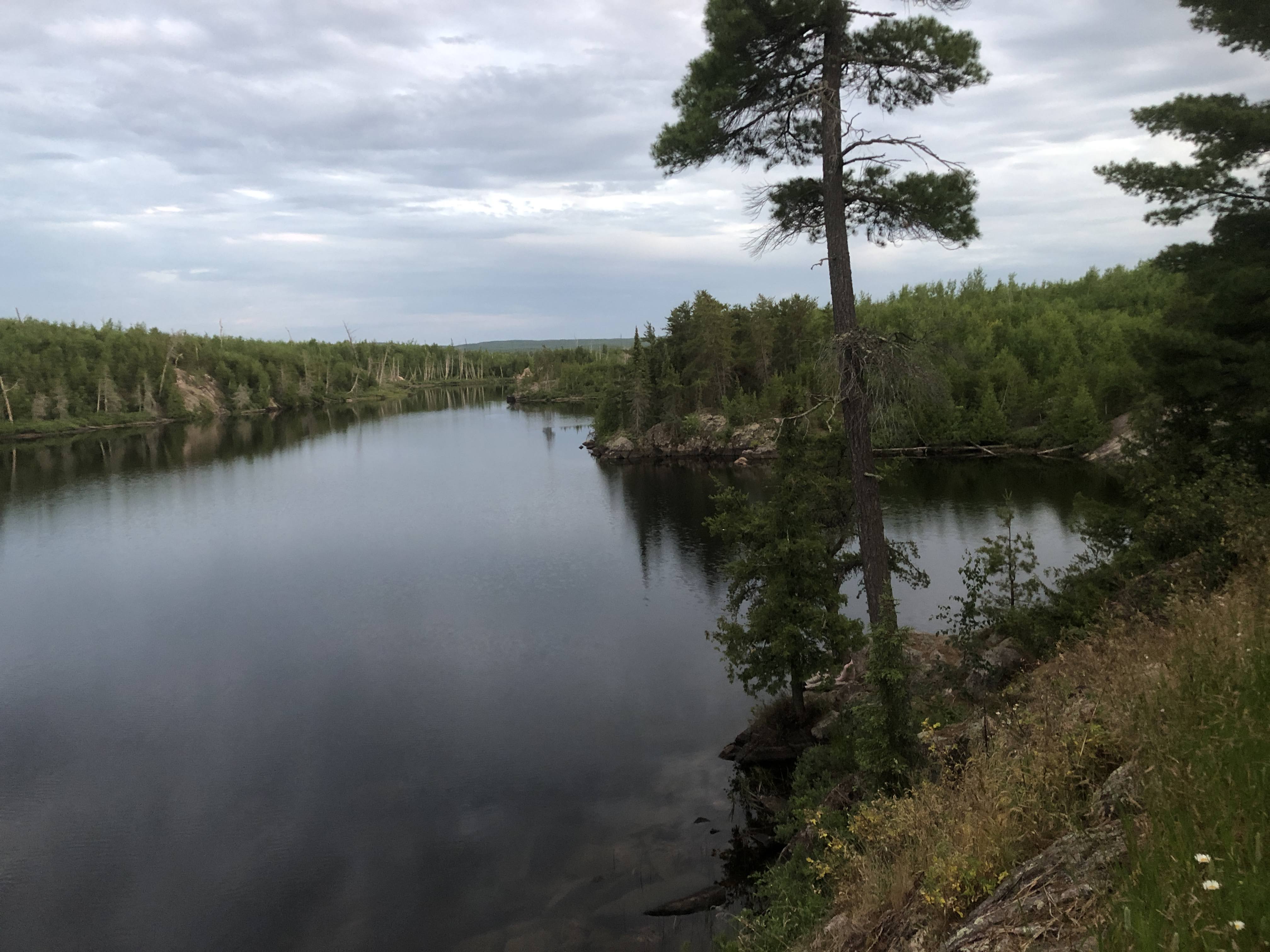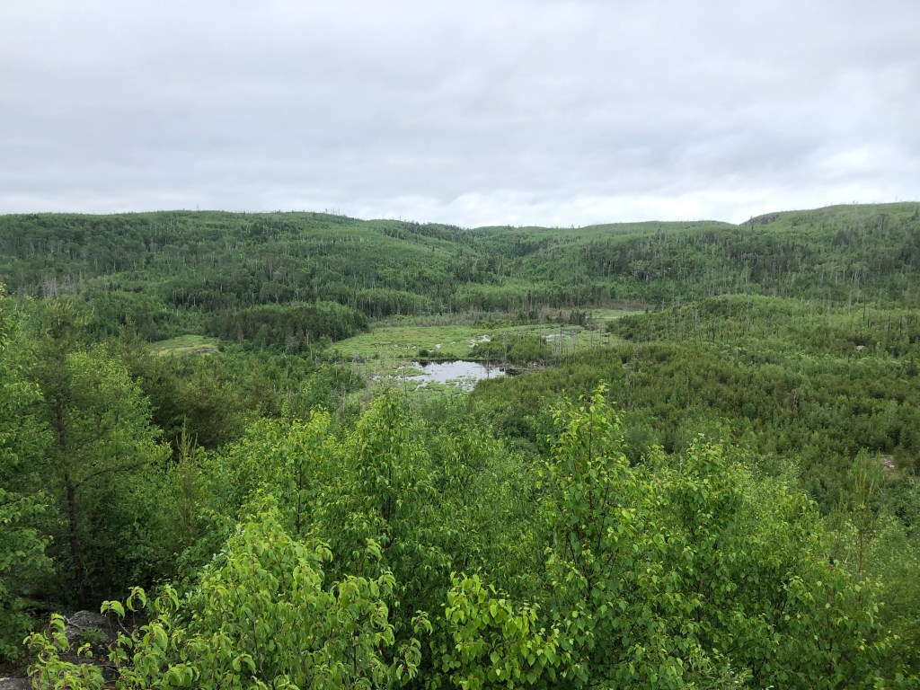 It was warmer and muggier than we’d expected, we both agreed. Before coming, we’d looked up the weather forecast for Grand Marais, the closest town we knew the name of – it had promised delightful highs in the seventies and lows in the fifties, perfect backpacking weather. It was just now beginning to occur to us that Grand Marais was right on Lake Superior, a natural fridge, and we were 60+ miles inland, insulated and surrounded by swampy bogs.
